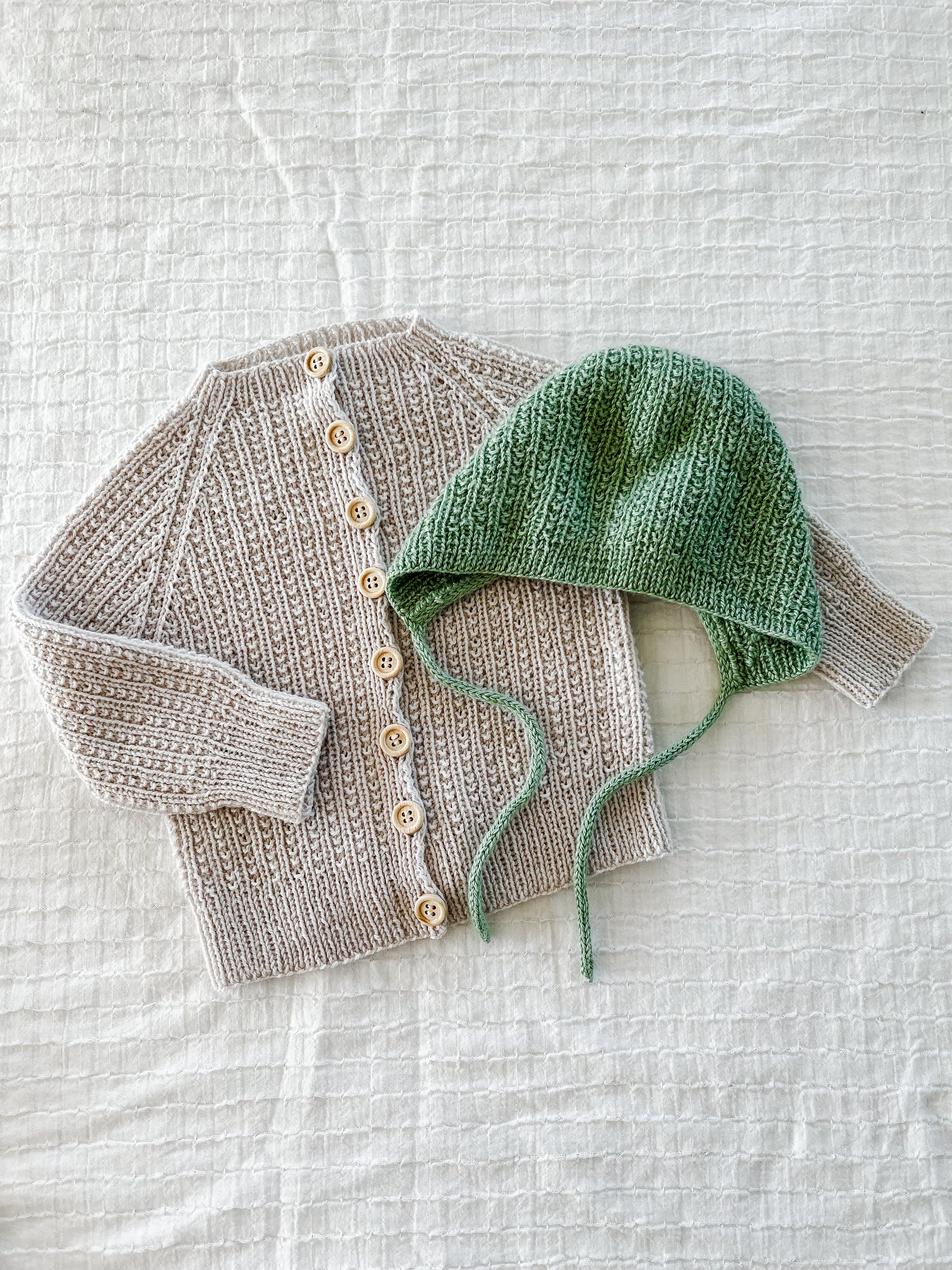 Strikkefasthet: 35 m pr. 10 cm i strukturmønster på pinne 3 mm